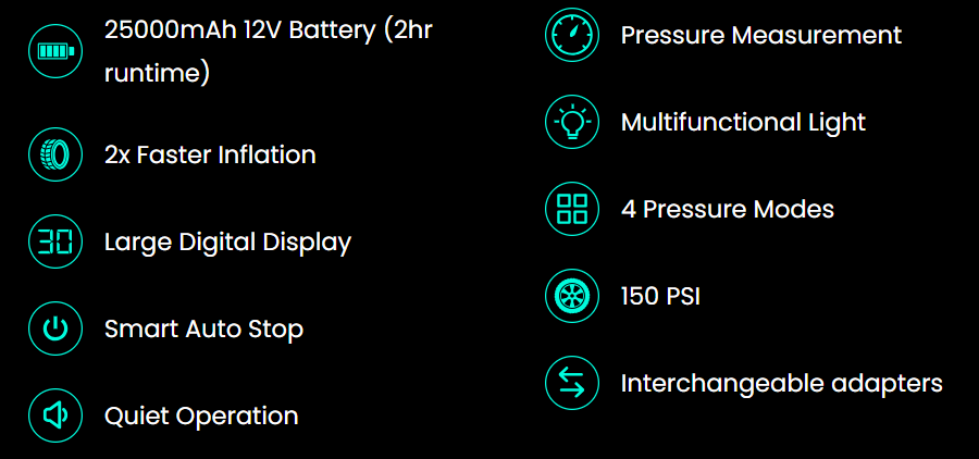 The Auto Air is designed with safety and reliability in mind, ensuring that you can inflate your tires worry-free. Here are its key safety features: